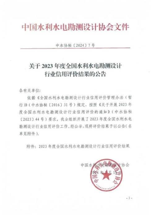 022024-02 4項(xiàng)AAA,3項(xiàng)AAA+!我院在2023年度水利建設(shè)市場主體及全國水利水電勘測設(shè)計(jì)行業(yè)信用評價中再創(chuàng)佳績 4項(xiàng)AAA,3項(xiàng)AAA+!我院在2023年度水利建設(shè)市場主體及全國水利水電勘測設(shè)計(jì)行業(yè)信用評價中再創(chuàng)佳績 發(fā)布日期:2024.02.02 近日,中國水利工程協(xié)會《關(guān)于2023年度水利建設(shè)市場主體(施工、監(jiān)理、招標(biāo)代理、質(zhì)量檢測單位)信用評價結(jié)果的公告(第一批)》(中水協(xié)〔2024〕6號)、中國水利水電勘測設(shè)計(jì)協(xié)會《關(guān)于... 發(fā)布日期:2024.02.02 近日,中國水利工程協(xié)會《關(guān)于2023年度水利建設(shè)市場主體(施工、監(jiān)理、招標(biāo)代理、質(zhì)量檢測單位)信用評價結(jié)果的公告(第一批)》(中水協(xié)〔2024〕6號)、中國水利水電勘測設(shè)計(jì)協(xié)會《關(guān)于...