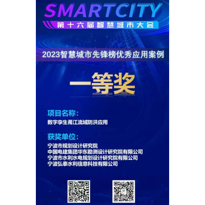 162023-10 喜報(bào) | 我院參與項(xiàng)目榮獲2023智慧城市先鋒榜優(yōu)秀應(yīng)用案例一等獎(jiǎng)! 喜報(bào) | 我院參與項(xiàng)目榮獲2023智慧城市先鋒榜優(yōu)秀應(yīng)用案例一等獎(jiǎng)! 發(fā)布日期:2023.10.16 近日,我院與寧波市規(guī)劃設(shè)計(jì)研究院、華東勘測(cè)設(shè)計(jì)研究院有限公司、寧波弘泰水利信息科技有限公司共同承擔(dān)的“數(shù)字孿生甬江流域防洪應(yīng)用”項(xiàng)目作為寧波智慧城市創(chuàng)新應(yīng)用成果,... 發(fā)布日期:2023.10.16 近日,我院與寧波市規(guī)劃設(shè)計(jì)研究院、華東勘測(cè)設(shè)計(jì)研究院有限公司、寧波弘泰水利信息科技有限公司共同承擔(dān)的“數(shù)字孿生甬江流域防洪應(yīng)用”項(xiàng)目作為寧波智慧城市創(chuàng)新應(yīng)用成果,...