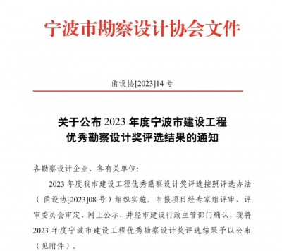 212023-06 喜報 | 我院兩大項目榮獲2023年度寧波市優(yōu)秀勘察設(shè)計獎! 喜報 | 我院兩大項目榮獲2023年度寧波市優(yōu)秀勘察設(shè)計獎! 發(fā)布日期:2023.06.21 近日,2023年度寧波市優(yōu)秀勘察設(shè)計獎評選結(jié)果出爐,我院設(shè)計的五江口閘及上游配套河道工程和象山縣爵溪街道東塘海塘維修加固工程分別榮獲水利工程設(shè)計組二等獎和三等獎! ? &m... 發(fā)布日期:2023.06.21 近日,2023年度寧波市優(yōu)秀勘察設(shè)計獎評選結(jié)果出爐,我院設(shè)計的五江口閘及上游配套河道工程和象山縣爵溪街道東塘海塘維修加固工程分別榮獲水利工程設(shè)計組二等獎和三等獎! ? &m...
