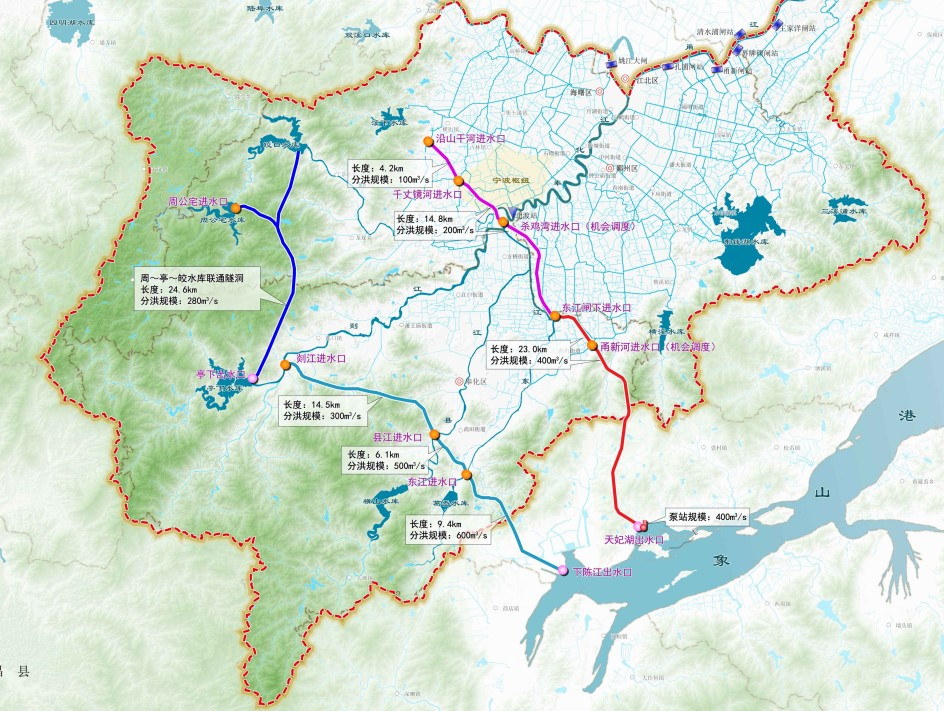 “浙東水資源配置通道寧波配水工程”前期專題研究:該項目為《浙江省水資源節(jié)約保護和利用總體規(guī)劃》中確定的重要工程,擬建一條主干線五條連接線,線路總長240公里,年引水量4.5億立方米。工程實施后可解決寧波市區(qū)、慈溪、余姚、象山等縣市區(qū)優(yōu)質(zhì)供水缺口,進一步提升我市水資源供給系統(tǒng)的韌性和風險防控能力,保障區(qū)域供水安全。
