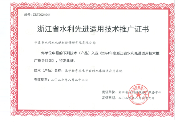 在產(chǎn)品創(chuàng)新方面,分別獲得第三屆寧波市專利創(chuàng)新大賽專利優(yōu)秀獎、“寧波市優(yōu)秀軟件產(chǎn)品”稱號、2024年“數(shù)據(jù)要素x”大賽浙江分賽獲優(yōu)勝獎,入選2024年度浙江省水利先進適用技術(shù)推廣指導目錄、2024年度寧波市優(yōu)質(zhì)產(chǎn)品推薦目錄和2024年浙江省數(shù)字經(jīng)濟發(fā)展優(yōu)秀案例近20項。