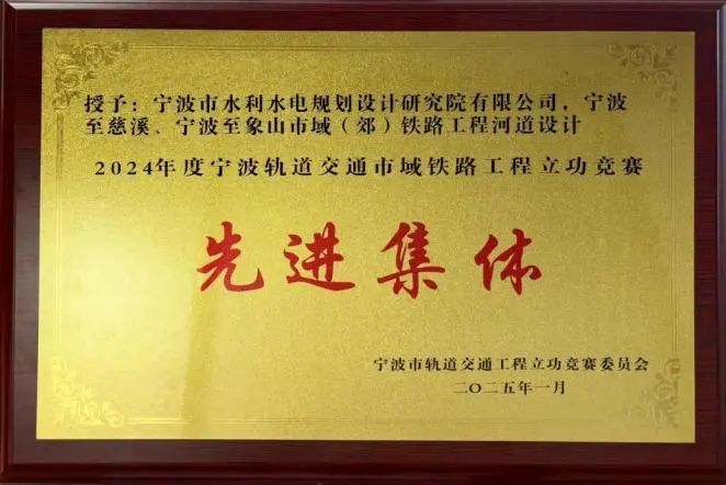 近日,在寧波軌道交通市域鐵路工程2024年度立功競賽表彰大會暨市域鐵路公司2025年生產(chǎn)工作會議上,我院憑借在寧波至慈溪、寧波至象山市域(郊)鐵路工程河道設(shè)計(jì)中的出色表現(xiàn),獲得第四競賽組第一名,授予“2024年度寧波軌道交通市域鐵路工程立功競賽先進(jìn)集體”榮譽(yù)稱號。