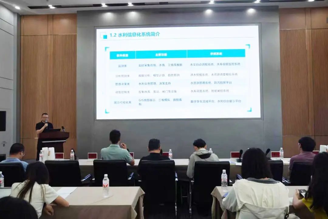 在第二日的講座報(bào)告與交流環(huán)節(jié)中,我院智慧水利研究院院長(zhǎng)顧巍巍以“基于大模型的防汛AI問答關(guān)鍵技術(shù)研究及應(yīng)用”為題,通過現(xiàn)場(chǎng)演示防汛智能AI問答系統(tǒng),生動(dòng)展示了人工智能技術(shù)在防汛決策支持中的創(chuàng)新應(yīng)用;基礎(chǔ)研發(fā)部總監(jiān)陳龍贊圍繞“甬水院模型平臺(tái):從甬江流域模型到澤圖”,詳細(xì)闡述了我院自主研發(fā)的水利計(jì)算模型平臺(tái)的技術(shù)演進(jìn)歷程和核心優(yōu)勢(shì);防災(zāi)減災(zāi)部總監(jiān)江雨田則通過播放數(shù)字孿生水庫(kù)建設(shè)視頻,結(jié)合“數(shù)字孿生水庫(kù)建設(shè)關(guān)鍵技術(shù)及應(yīng)用”的專題報(bào)告,直觀呈現(xiàn)了數(shù)字孿生技術(shù)在水庫(kù)智慧化管理中的實(shí)踐成果。三位專家的授課既有理論深度,又包含豐富的實(shí)踐案例,系統(tǒng)解析了智慧水利領(lǐng)域關(guān)鍵技術(shù)的研發(fā)路徑與創(chuàng)新應(yīng)用。