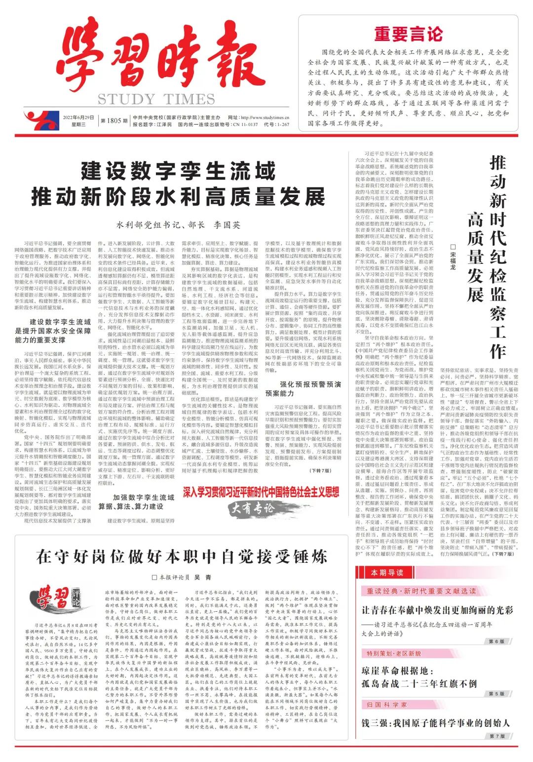 習(xí)近平總書(shū)記強(qiáng)調(diào),要全面貫徹網(wǎng)絡(luò)強(qiáng)國(guó)戰(zhàn)略,把數(shù)字技術(shù)廣泛應(yīng)用于政府管理服務(wù),推動(dòng)政府?dāng)?shù)字化、智能化運(yùn)行,為推進(jìn)國(guó)家治理體系和治理能力現(xiàn)代化提供有力支撐,并提出了提升流域設(shè)施數(shù)字化、網(wǎng)絡(luò)化、智能化水平的明確要求。我們要深入學(xué)習(xí)貫徹習(xí)近平總書(shū)記重要講話精神和重要指示批示精神,加快建設(shè)數(shù)字孿生流域,構(gòu)建智慧水利體系,推動(dòng)新階段水利高質(zhì)量發(fā)展。