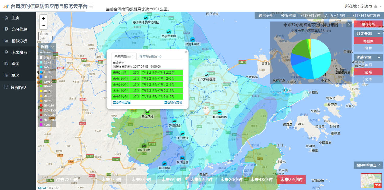 平臺以水行業(yè)對于氣象的需求而誕生的,匯集國內(nèi)外主流氣象機構(gòu)的數(shù)值預報,通過大數(shù)據(jù)、云計算、空間分析以及專業(yè)模型技術(shù),實現(xiàn)天氣實況全掌握、未來降雨全面展現(xiàn)、分析簡報快速生成、預報降雨智能評估、數(shù)據(jù)大屏個性化定制,平臺不僅解決了未來降雨的時間分配,還解決了水利要素的時空分配,為防汛應急等相關提供科學的數(shù)據(jù)支撐,也為模型計算提供準確的邊界條件,提高結(jié)果精度。