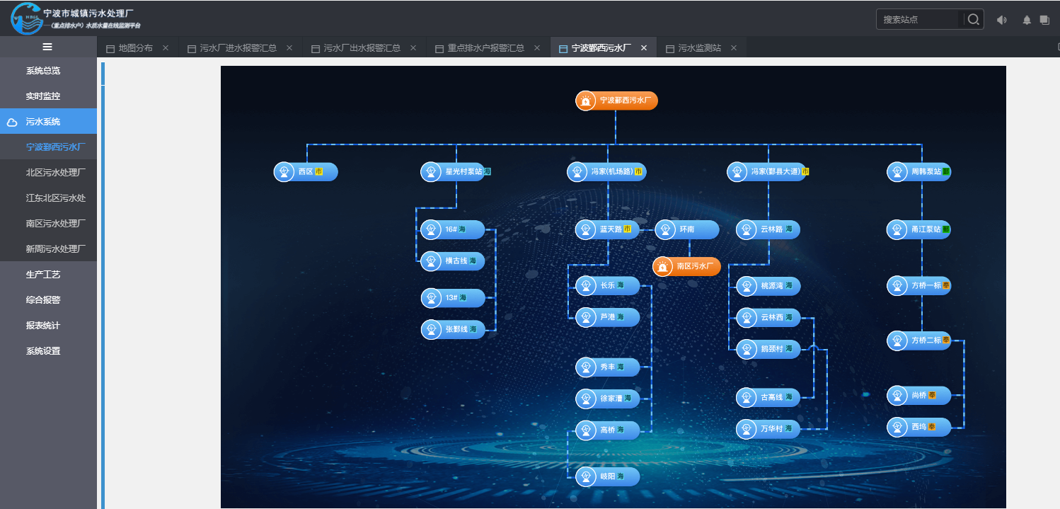 對轄區(qū)范圍內的城鎮(zhèn)污水處理廠進行管理,結合污水管理需求,開發(fā)污水廠站點管理、污水廠進出水報警、各級污水廠實時數(shù)據(jù)監(jiān)控、污水系統(tǒng)統(tǒng)計、生產工藝展示、污水廠巡檢等功能,實現(xiàn)城鎮(zhèn)污水系統(tǒng)的高效在線化管理。