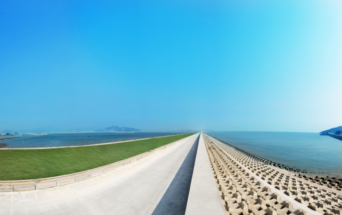 工程圍涂面積2.12萬畝,海堤全長約5345m。工程項目由海堤、水閘、排澇河、防波堤、船閘、交通堤、交通橋等組成。海堤工程包括南堤4508.3m、北堤840m;水閘工程炮臺山主排閘5孔×8m、飯桶山主納閘凈寬4孔×8m、貓頭納排閘3孔×3m、竹灣沖沙閘1孔×3m;河道工程包括炮臺山河道3081m、貓頭納排河2390m、白巖山主排河1300m、飯桶山主排河(3064m)以及南區(qū)納潮干河(4073m);防波堤長為703.87m;船閘凈寬10m;交通工程包括Ⅰ號交通堤、Ⅱ號交通堤及北分支、南分支交通堤,施工道路、竹灣碼頭、竹灣錨地、毛灣碼頭及防波堤、1#交通橋、2#交通橋。