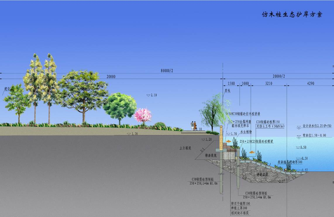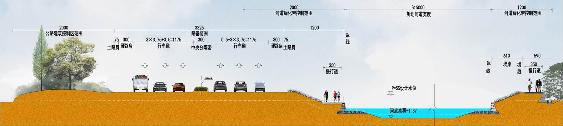 工程位于海曙區(qū)西側(cè),南起鄞江,北至姚江,為實(shí)現(xiàn)對(duì)海曙西側(cè)山區(qū)洪水的攔截,共整治河道長(zhǎng)24km,建設(shè)閘站40座,閘門總凈寬554m,泵站22m3/s,改建新建橋梁42座。其中有3.5km與G228國道并線,為協(xié)調(diào)國道與河道之間用地布局,通過優(yōu)化河道斷面型式和堤線線位,實(shí)現(xiàn)了對(duì)土地的集約利用,打造一條海曙西部交通和河道的靚麗風(fēng)景線。