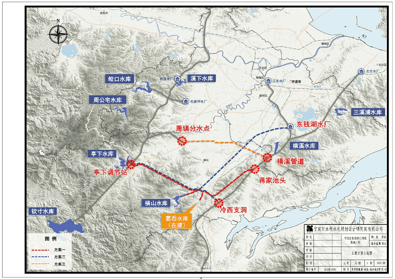 建設內容包括一條干線、兩條支線,以及沿線調節(jié)站、加壓泵站及各類閥井。工程全線總長約40.73km,其中干線長約36.69km,隧洞長度約30.91km,管道長度約5.80km,橫山支線管道長約1.81km,葛岙支線管道長約2.23km;新建3座調節(jié)站,分別為新建亭下調節(jié)站、橫山支線調節(jié)站、蔣家池頭調節(jié)站;新建1座加壓泵站,為葛岙加壓泵站;新建各類檢修閥井若干