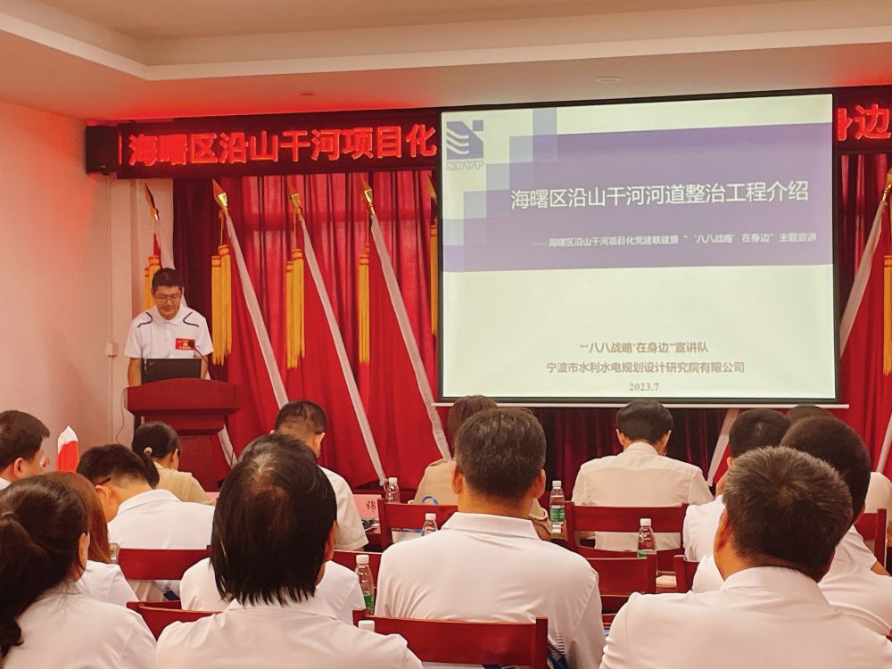 儀式結(jié)束后,新聘任的“‘八八戰(zhàn)略’在身邊”宣講隊成員之一,我院沿山干河項目組成員褚洪康,做了《海曙區(qū)沿山干河河道整治工程介紹》的匯報,標志著項目主題宣講正式啟動。