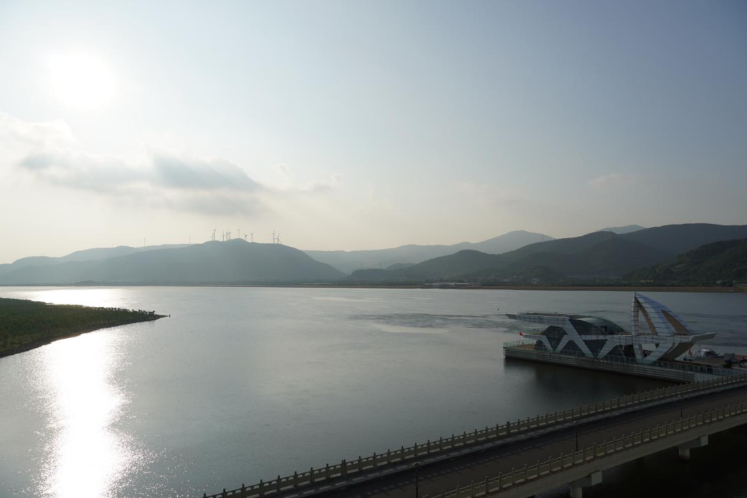 梅山灣外,銀浪拍岸;梅山灣內(nèi),碧波含翠。首先,研學(xué)隊(duì)伍到達(dá)梅山灣建設(shè)管理中心,跟隨工作人員登樓參觀,眺望南堤樞紐及附近設(shè)施,聆聽工程總體建設(shè)情況,并觀看宣傳片,了解該工程的誕生始末。
