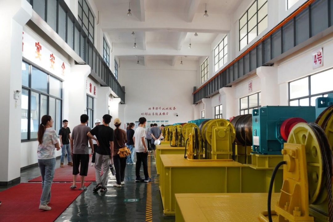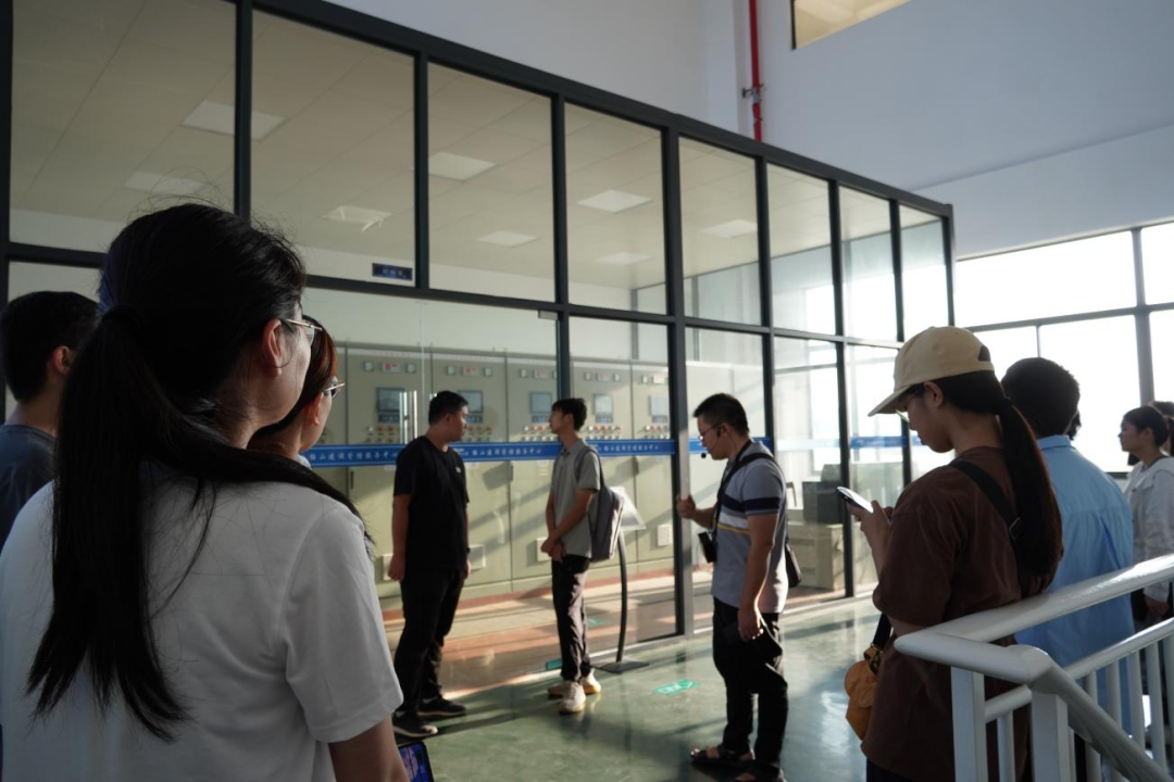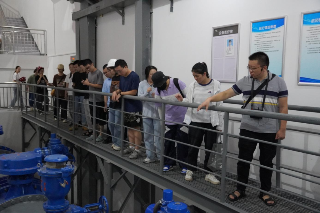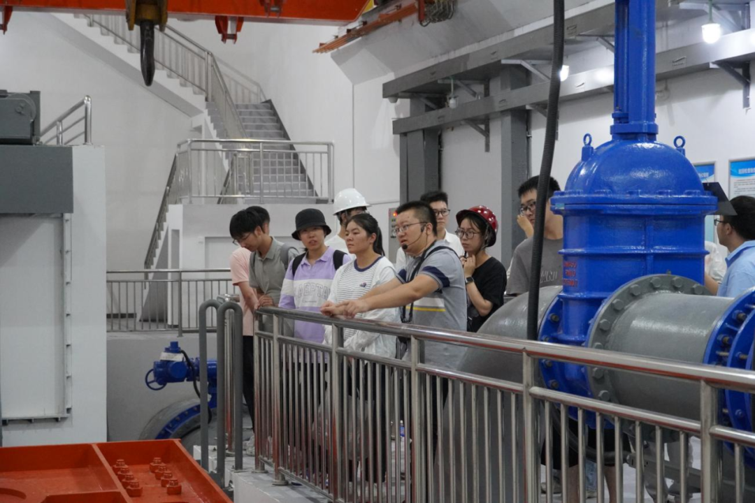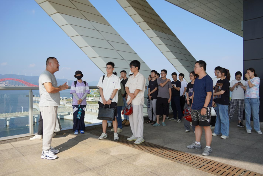 最后,研學(xué)隊(duì)伍來到北堤樞紐參觀。該工程榮獲中國(guó)建筑行業(yè)工程質(zhì)量的最高榮譽(yù)獎(jiǎng)——2020-2021年度第一批中國(guó)建設(shè)工程魯班獎(jiǎng)。胡經(jīng)理帶領(lǐng)研學(xué)隊(duì)伍依次進(jìn)入啟閉機(jī)房、觀景臺(tái)、控制室等處,現(xiàn)場(chǎng)講解工程設(shè)計(jì)思路、建造工藝和管理要點(diǎn)。