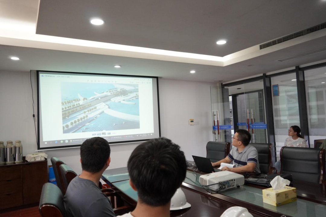 接著,研學(xué)隊(duì)伍來到會(huì)議室,胡經(jīng)理結(jié)合建設(shè)目標(biāo)、工程建設(shè)客觀因素、工程效益和景觀效果,詳細(xì)講解設(shè)計(jì)思路、問題對(duì)策和創(chuàng)新點(diǎn),為大家上了一堂嚴(yán)謹(jǐn)生動(dòng)的復(fù)盤課。比如海堤采用緩坡入海,外側(cè)采用異形結(jié)構(gòu)塊消浪,內(nèi)坡采用生態(tài)水工磚美化,使海堤具備結(jié)構(gòu)和生態(tài)景觀雙重效果;船閘與海堤銜接段軟土處理采用新型技術(shù)應(yīng)用——樁網(wǎng)復(fù)合地基,形成“樁-網(wǎng)-土”協(xié)同工作共同承載的復(fù)合工藝。在座職工認(rèn)真聆聽梅山灣如何從曾經(jīng)的“漲潮黃沙水,落潮滿目泥”到如今的“水清、岸綠、波寧、潮平”,受益匪淺。