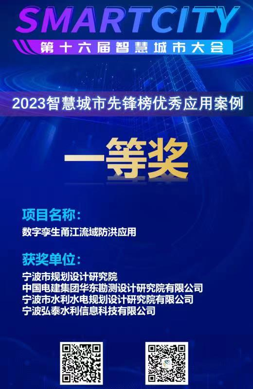 近日,我院與寧波市規(guī)劃設(shè)計(jì)研究院、華東勘測(cè)設(shè)計(jì)研究院有限公司、寧波弘泰水利信息科技有限公司共同承擔(dān)的“數(shù)字孿生甬江流域防洪應(yīng)用”項(xiàng)目作為寧波智慧城市創(chuàng)新應(yīng)用成果,精彩亮相“第十六屆中國(guó)智慧城市大會(huì)”,并榮獲2023智慧城市先鋒榜優(yōu)秀應(yīng)用案例一等獎(jiǎng),同時(shí)入選《中國(guó)智慧城市優(yōu)秀應(yīng)用案例集(2023)》,已由中國(guó)電力出版社出版發(fā)行。