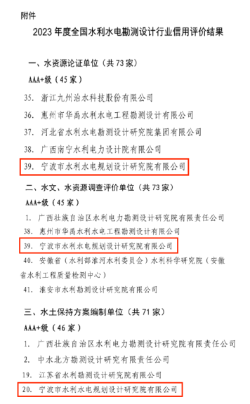 4項AAA,3項AAA+!我院在2023年度水利建設(shè)市場主體及全國水利水電勘測設(shè)計行業(yè)信用評價中再創(chuàng)佳績