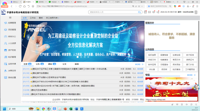 從2002年探索建設(shè)流域數(shù)字化至今,寧波院業(yè)務(wù)的數(shù)字化已走過了20多年,2023年,以事業(yè)部制轉(zhuǎn)型為契機(jī),提出建設(shè)以O(shè)A辦公系統(tǒng)、業(yè)財(cái)一體化系統(tǒng)、知識(shí)庫(kù)系統(tǒng)為代表的管理工具,在業(yè)務(wù)數(shù)字化的基礎(chǔ)上,推動(dòng)企業(yè)管理的數(shù)字化轉(zhuǎn)型。