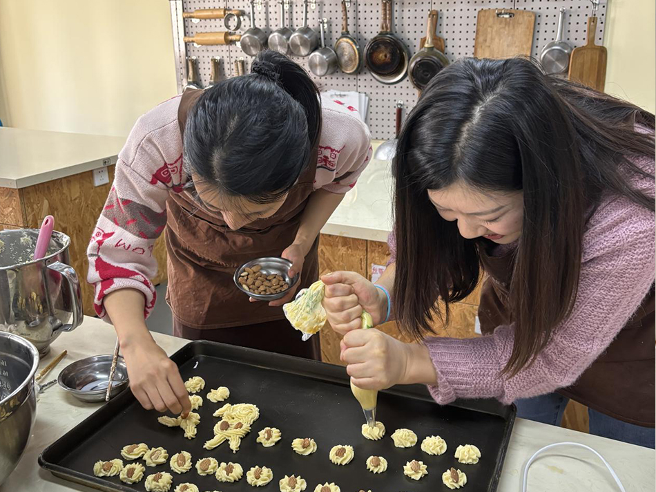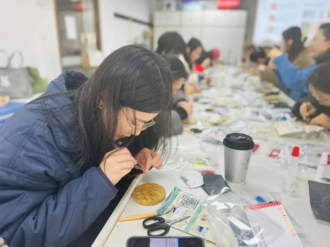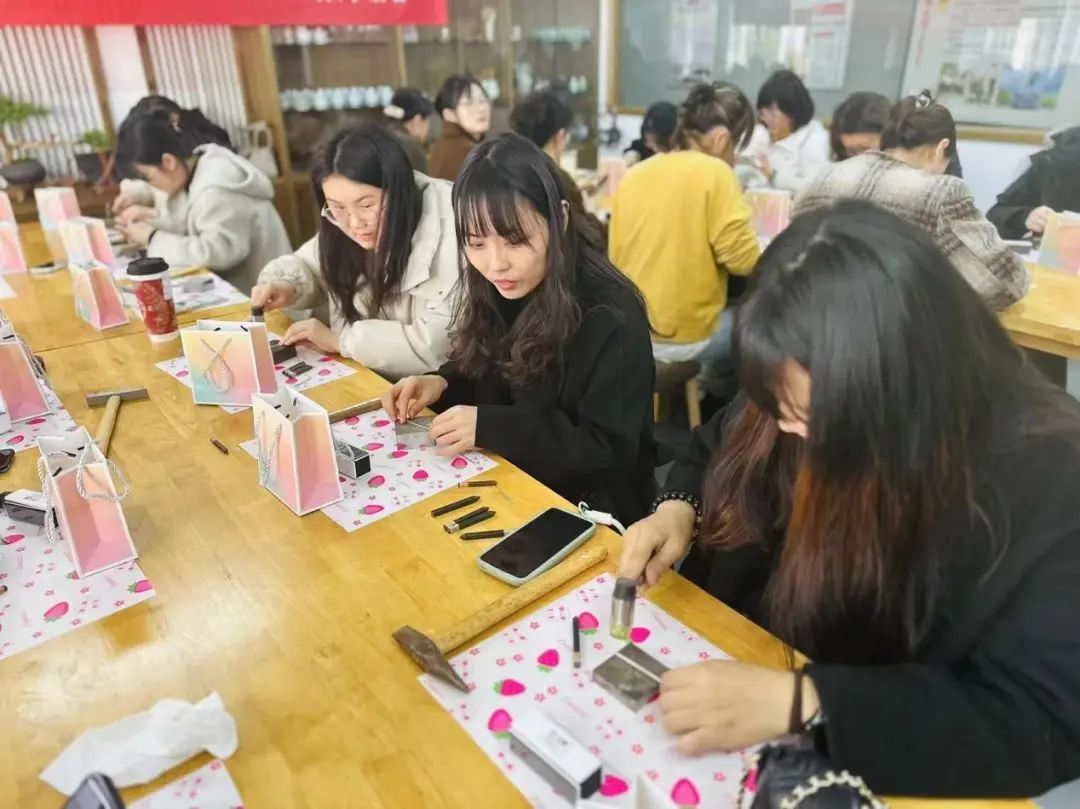 活動當(dāng)天,女職工們按時到達活動教室,發(fā)揮巧思,施展妙手,或是“掐絲、剪絲、上砂、上膠”,或是“測量、造型、印刻、拋光”,或是“和面、打發(fā)、烘烤、裝點”,解鎖了一系列全新的體驗,收獲了節(jié)日的快樂和美好。