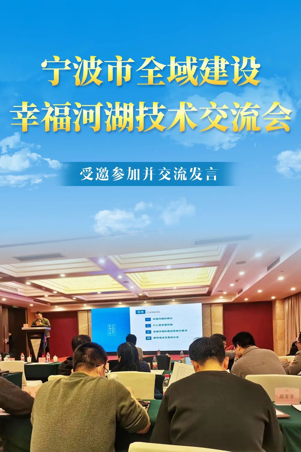 為深入貫徹落實習(xí)近平總書記“十六字”治水思路,積極響應(yīng)建設(shè)造福人民的幸福河的偉大號召,進一步推進寧波市全域幸福河湖建設(shè),加快各地幸福河湖標(biāo)志性成果建設(shè),積極打造全域建設(shè)幸福河湖市域樣板,近日,由寧波市河長辦主辦的寧波市全域建設(shè)幸福河湖技術(shù)交流會順利舉行,各區(qū)(縣、市)、功能園區(qū)河長辦等單位參加本次會議。我院受邀參加并交流發(fā)言。