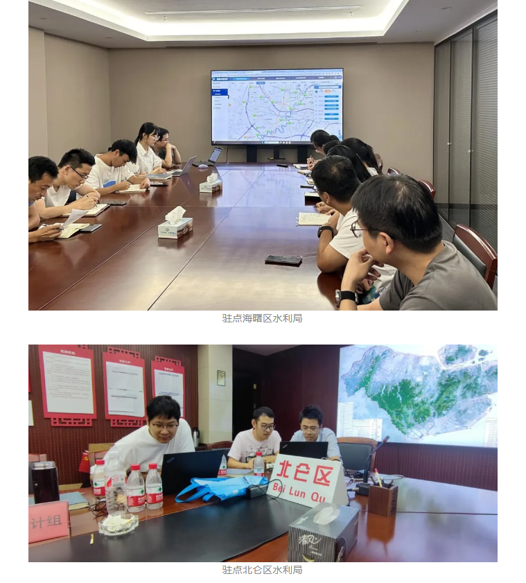 剛剛過去的中秋假期,今年第13號臺風“貝碧嘉”強勢來襲,我院聞“風”而動,9月12日起,按照我院防汛防臺保障工作計劃,提前部署抽調(diào)精兵強將組成技術(shù)團隊,第一時間到崗籌備,做好支援保障工作。連續(xù)兩天,進駐市、區(qū)兩級水利、應(yīng)急部門,利用我院自主研發(fā)的各項智慧水利產(chǎn)品,全力做好臺風防御、應(yīng)急協(xié)同支撐工作。