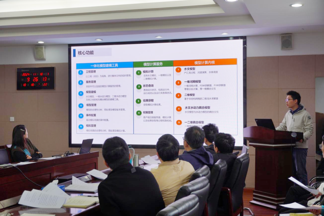 介紹結(jié)束后,參會人員針對該平臺的核心功能和實(shí)操應(yīng)用進(jìn)行熱烈交流。大家一致認(rèn)為,該平臺是目前我院自主研發(fā)的通用化、模塊化、精細(xì)化的水文水動力數(shù)學(xué)模型及配套分析工具的集大成者,能夠?qū)崿F(xiàn)對流域水情的實(shí)時(shí)模擬和精準(zhǔn)預(yù)測,能夠?yàn)榉篮檎{(diào)度、水資源管理等水利治理管理工作提供兼具前瞻性、科學(xué)性、精準(zhǔn)性、安全性的決策支撐。
