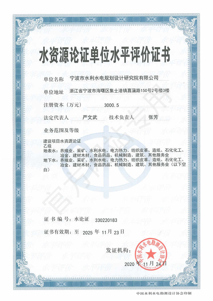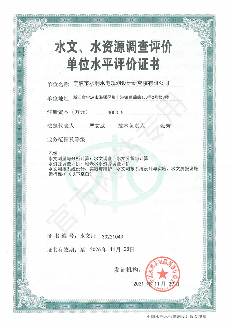 水文、水資源調(diào)查評(píng)價(jià)乙級(jí)