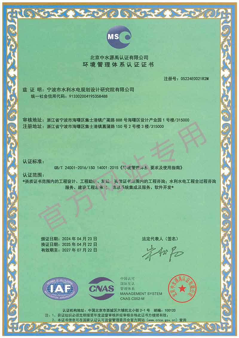 QES三體系-環(huán)境管理體系認(rèn)證證書