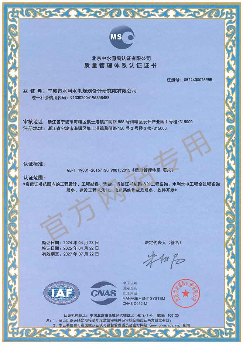 QES三體系-質(zhì)量管理體系認(rèn)證證書
