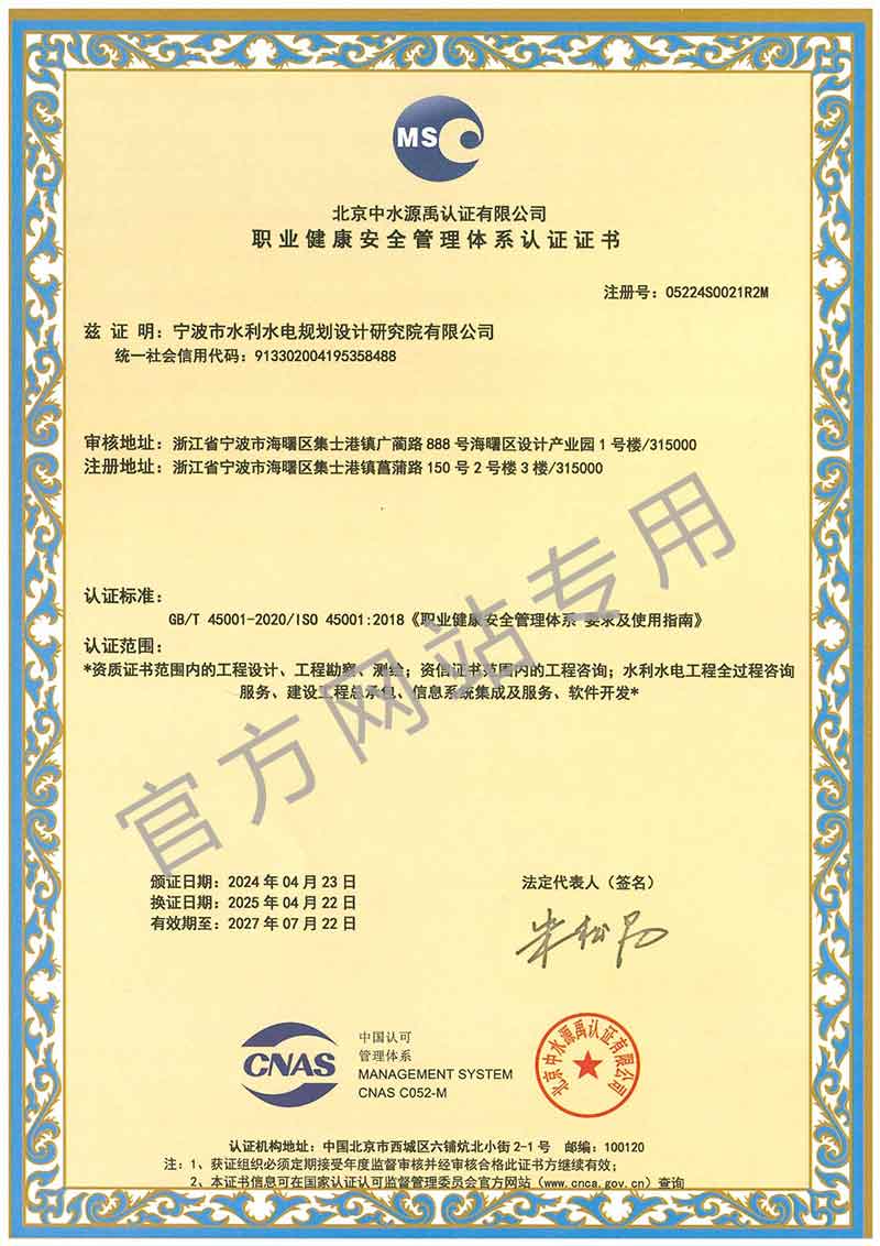 QES三體系-職業(yè)健康安全管理體系認(rèn)證證書