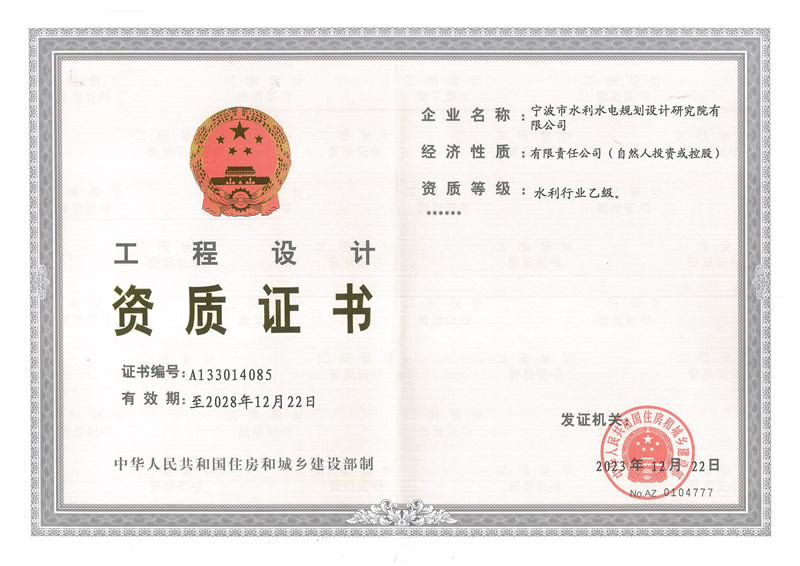 工程設(shè)計(jì)(水利行業(yè))乙級(jí)